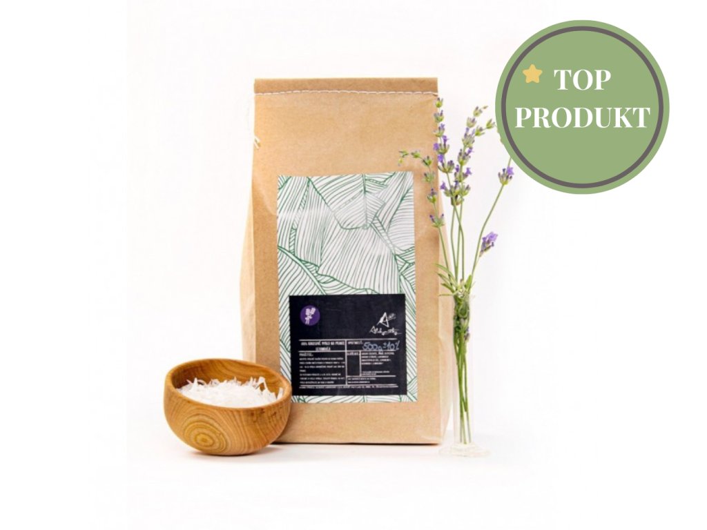 Levanduľové mydlové vločky Alchymistky sú ekologickou alternatívou ku klasickým pracím prostriedkom. Vyrábajú sa ručne zo 100 % kokosového oleja a vďaka obsahu levanduľového esenciálneho oleja sú obzvlášť vhodné na posteľnú bielizeň – levanduľa má prirodzené upokojujúce účinky a zároveň odpudzuje mole.