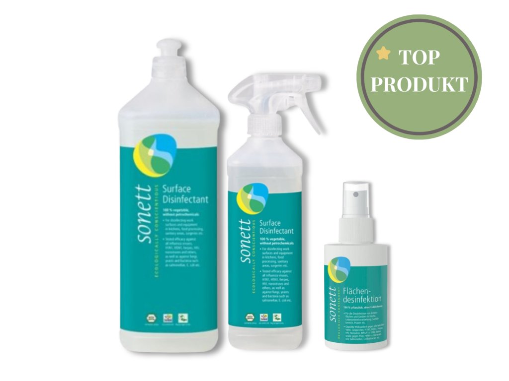 Sonett dezinfekčný čistič dezinfikuje pracovné plochy a zariadenia v kuchyni, sanitárne plochy, ordinácie a pod. Má antibakteriálny a protivírusový účinok. Výborne likviduje huby a kvasinky.